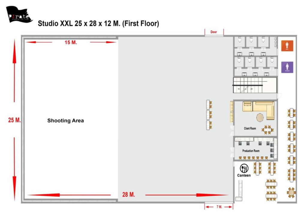 STUDIO XXL Size 24 X 28 X 12 M. STUDIO XXL SIZE 25 X 28 X 12 M.DRESSING ROOMFITTING ROOMSHOWER ROOMREST ROOMLIVING AREACANTEENWIFI ACCESS